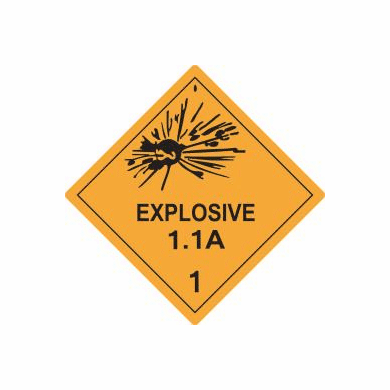 • Design: Printed on semi-gloss paper stock. Explosive Emblem with Text Printed, "Explosive, 1.1A, 1"